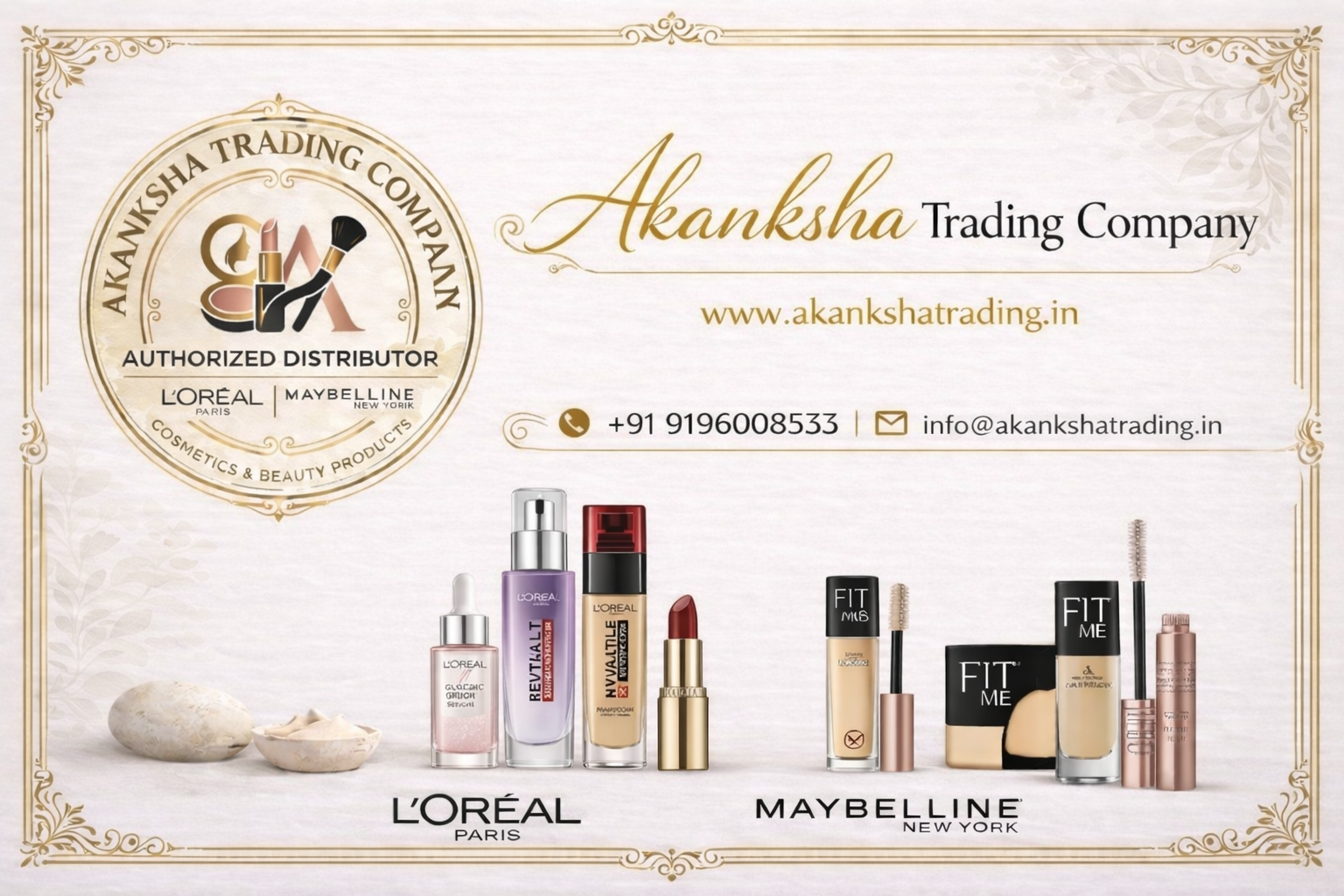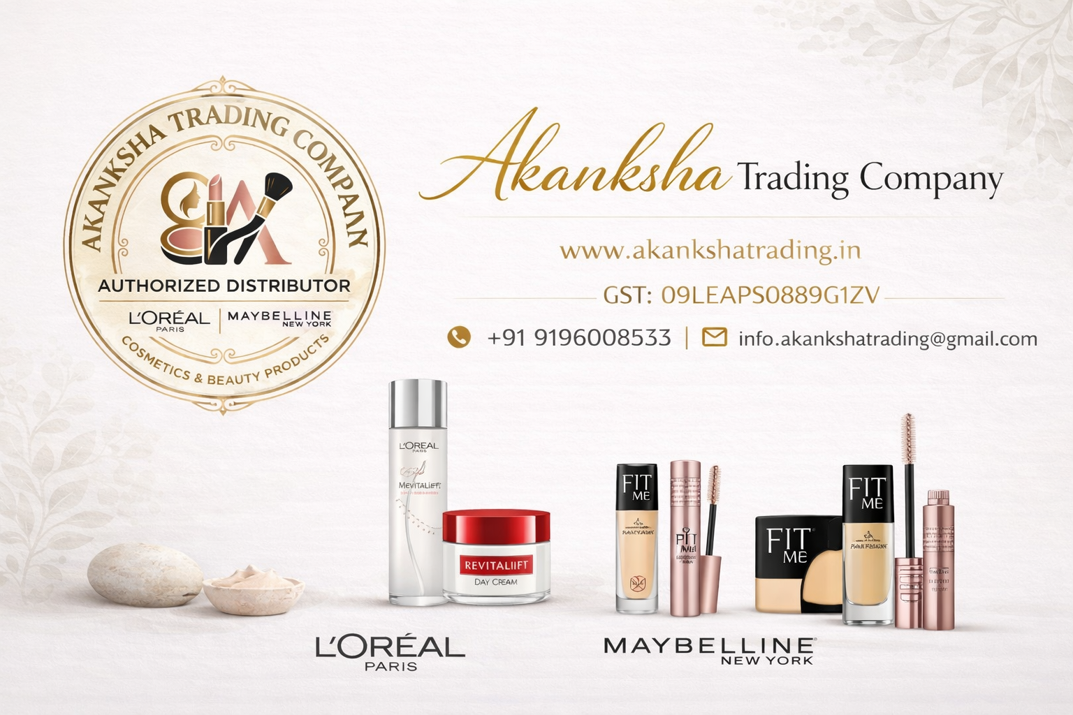 Akanksha Trading Company is an authorized distributor for L'Oréal Paris and Maybelline New York across Uttar Pradesh — delivering authentic, premium beauty to every doorstep.